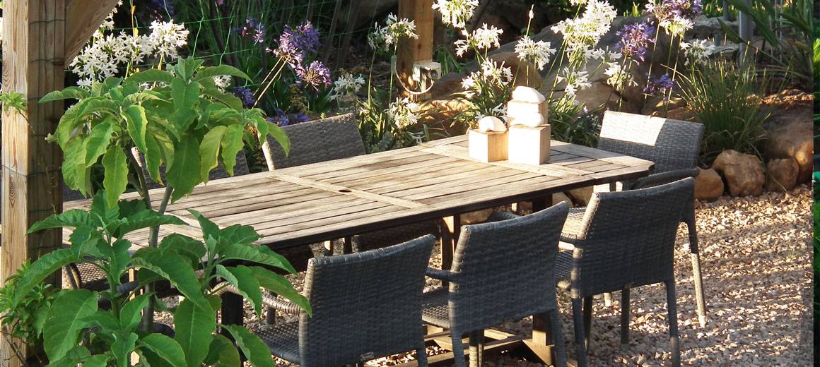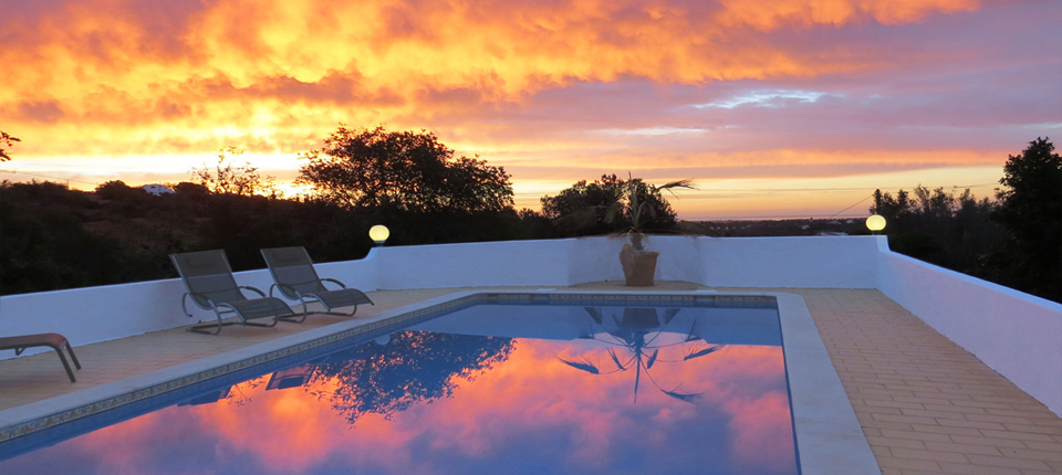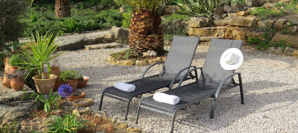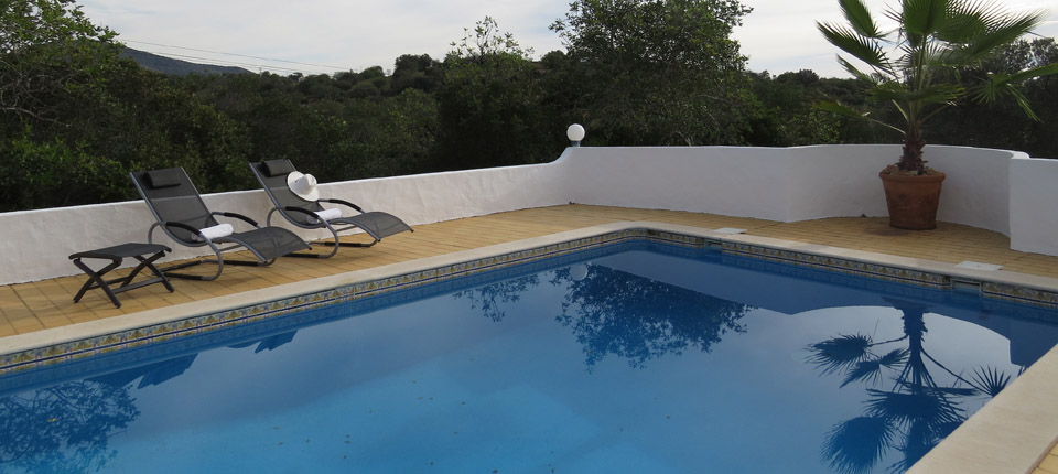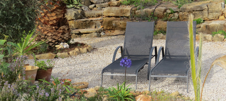 Some sun loungers in the shade of a palm tree, but may if desired be interred on the terrace of the pool. From the whole garden you have a wonderful view of the landscape of the Algarve and in the distance the Gulf of Calzai.